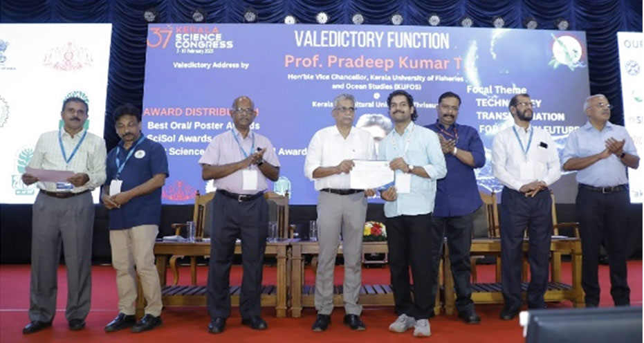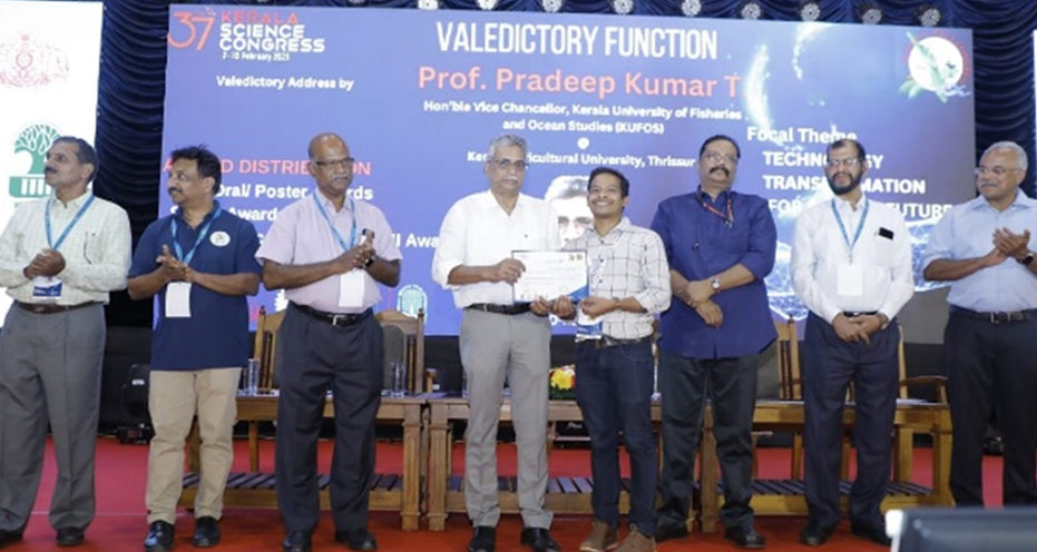 Dr. SreejithM.M. receiving best paper award in Mathematicsin Kerala Science Congress 2025.