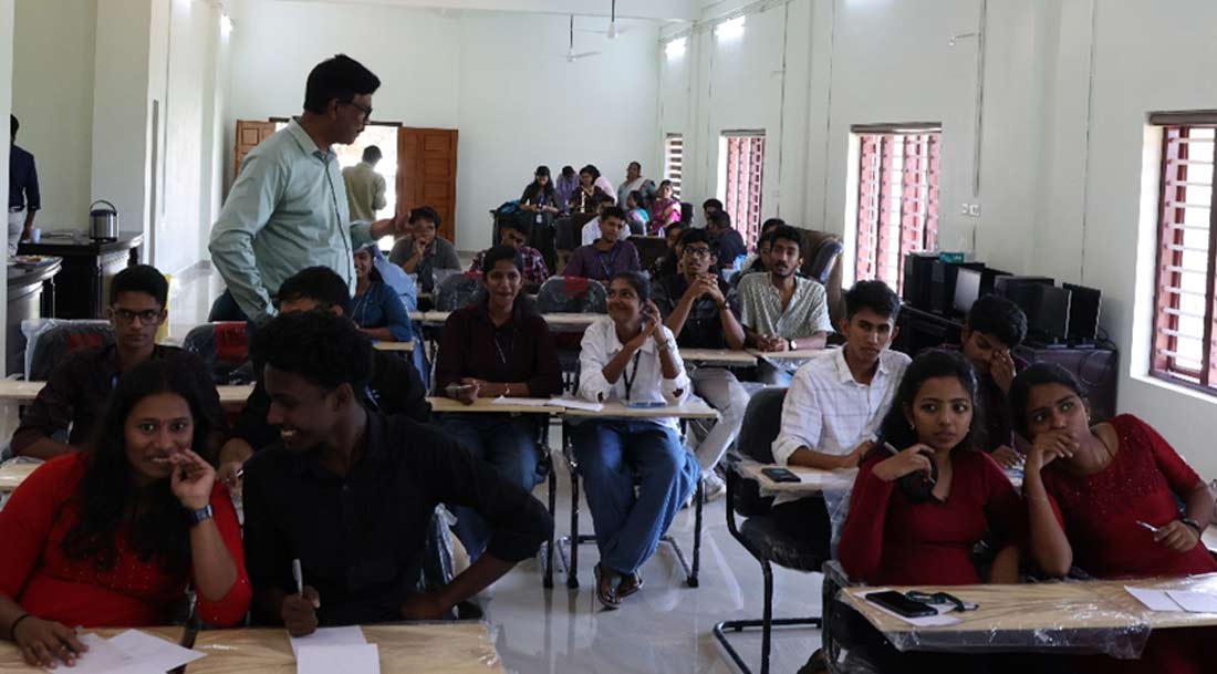 The District level program, aimed at college students of Kottayam district included a quiz competition named Maths Mental Challenge, an Idea pitching competition and a Poster presentation competition. The SRIBS Ever rolling trophy for the best performing college was awarded to St. Berchman’s College, Changanassery. The competitions were followed by the SRIBS Seminar titled “Ramanujan’s legacy in modern cryptography”, delivered by Dr. Adersh V. K., TKM College of Arts & Science, Kollam.